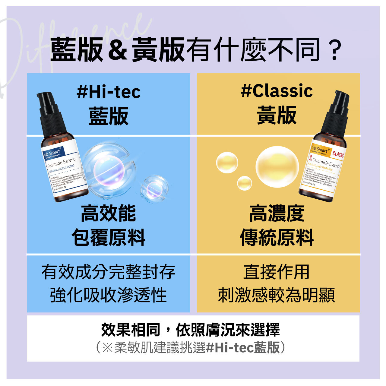 2. Classc黃版:使用『一般傳統型原料』強調高濃度為設計,但由於直接作用於肌膚上,刺激性相對會高一點。