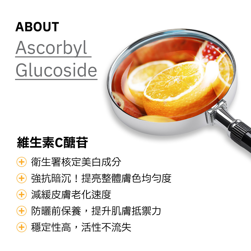 如果想要皮膚變白?那要試看看維生素C醣苷。衛福部核准使用美白成分,兼具有效與安全,增加肌膚保護力與美白的保養品,成分簡單無負擔