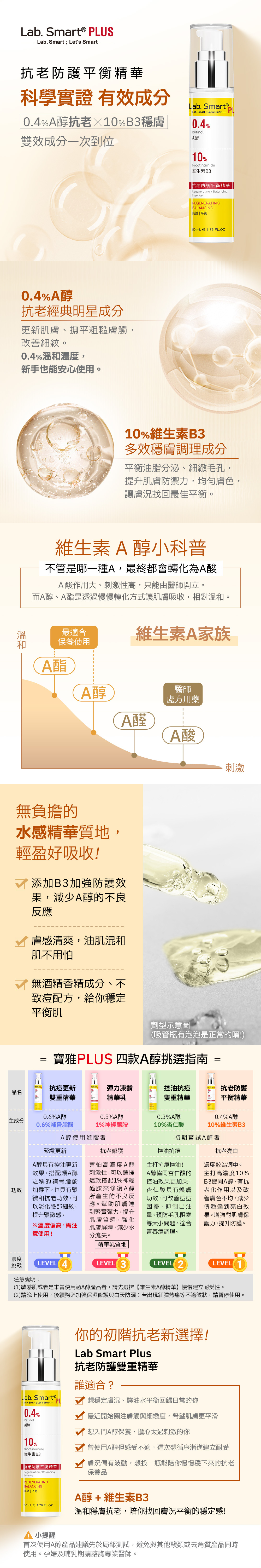 A醇搭配維生素B3,讓肌膚不泛油光,提亮膚色、緊實並加強肌膚防護。
