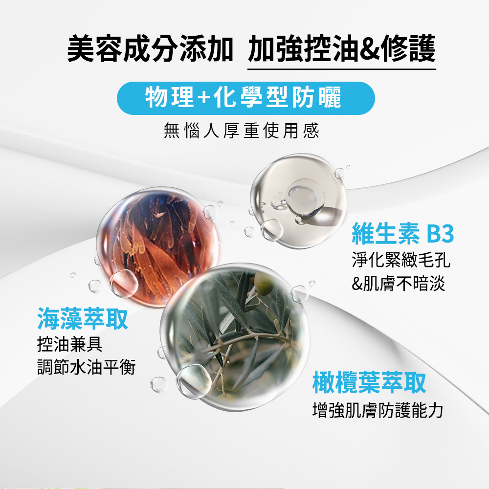 ◎輕盈質地,防曬x保濕x控油全方位