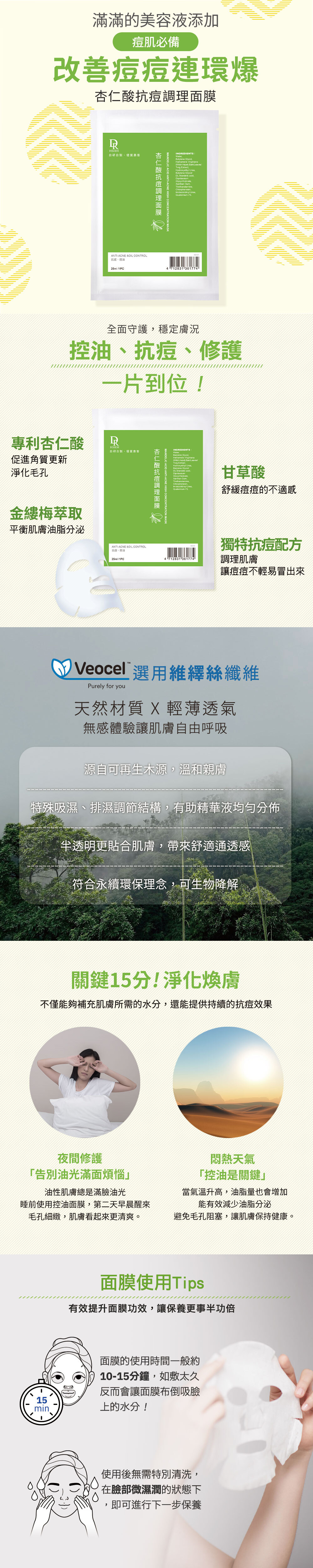 長痘痘怎麼辦?杏仁酸煥膚代謝老廢角質,平衡控油,改善臉出油狀況,杏仁酸抗痘有助達到緊緻毛孔效果,一款適合痘痘肌保養,使用杏仁酸抗痘面膜。