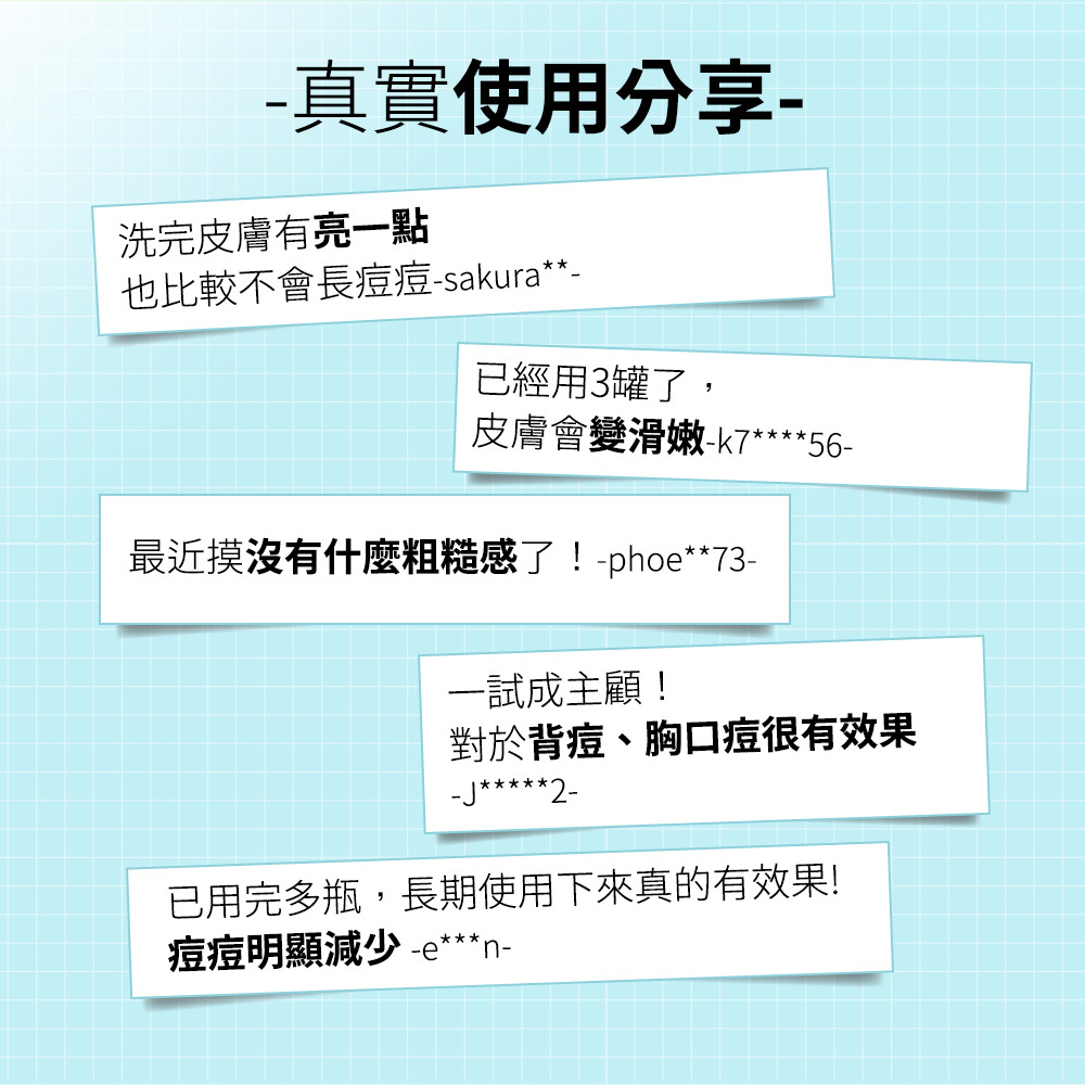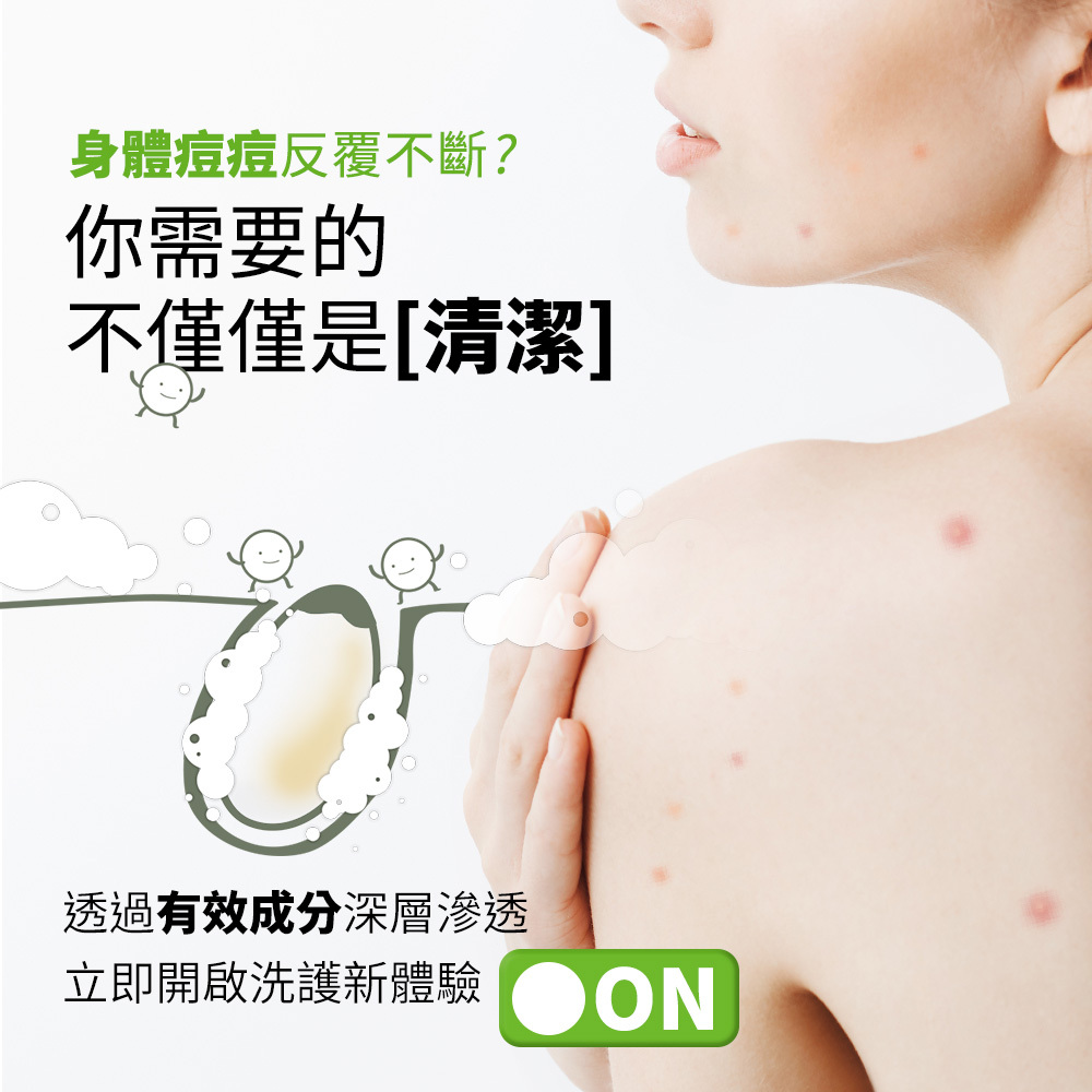 專為胸痘、背部痘痘打造,平衡油脂分泌,讓肌膚呼吸自由,溫和煥膚,更新肌膚老廢角質,細緻平滑膚觸