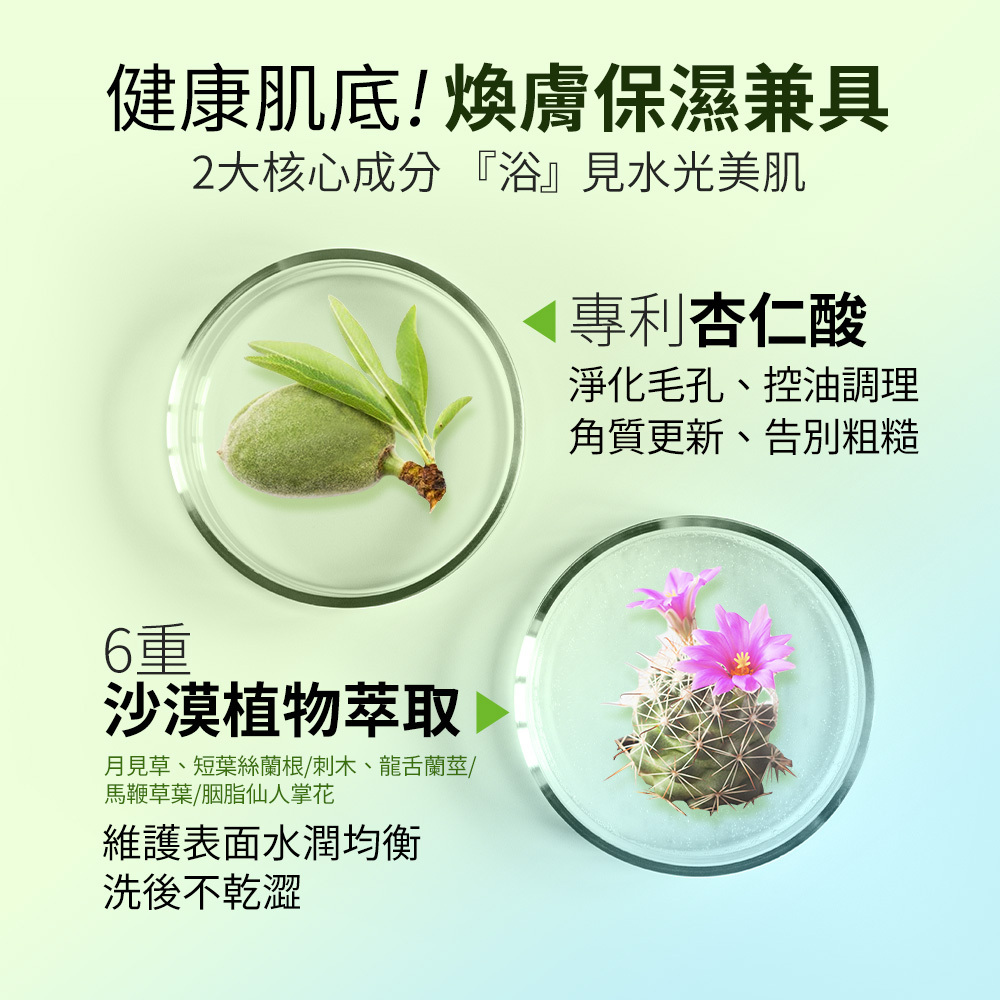 ☆杏仁酸+多種沙漠植萃美容液,深層煥膚兼具保濕