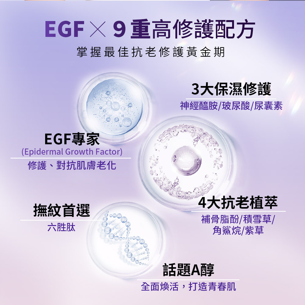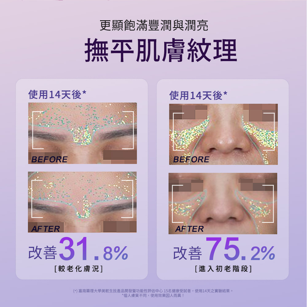 口碑No.1抗老緊緻乳液!添加4種抗老植萃(補骨脂酚、積雪草、角鯊烷、紫草)修護乾燥肌膚、撫平老化粗糙細紋,輕透微乳液,滋潤而不黏膩。