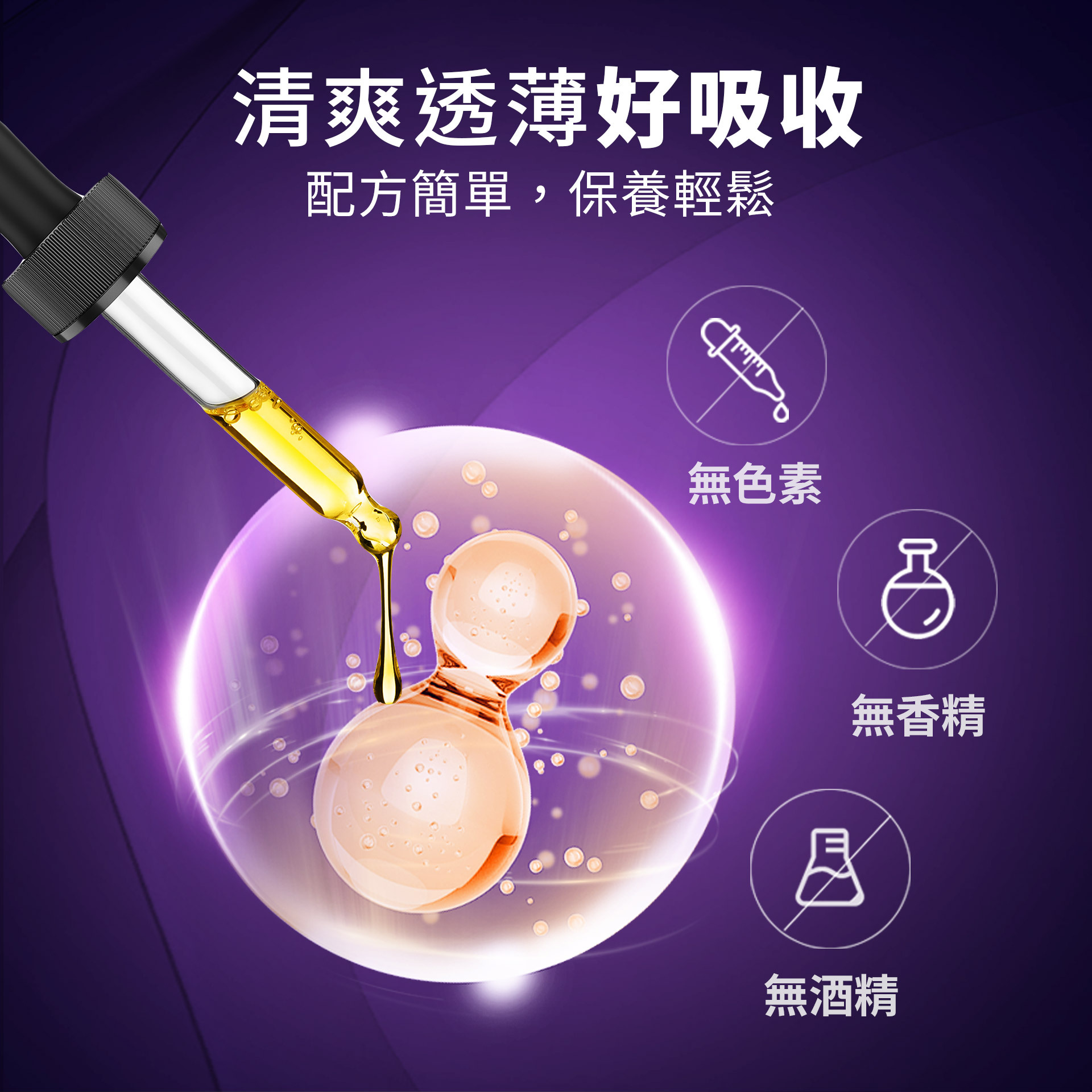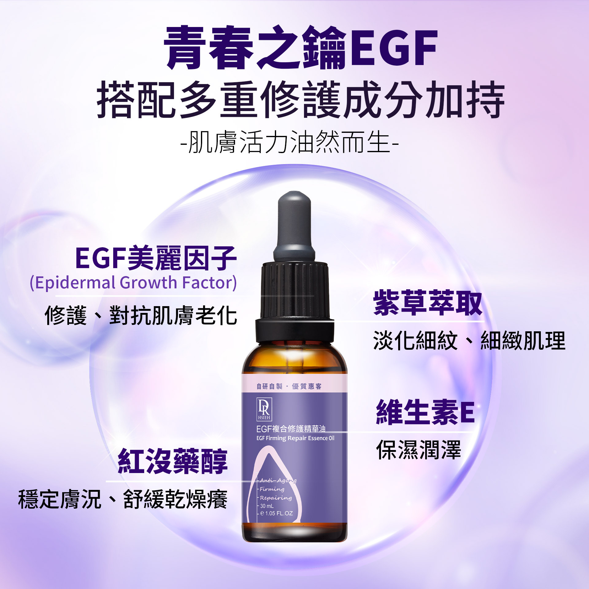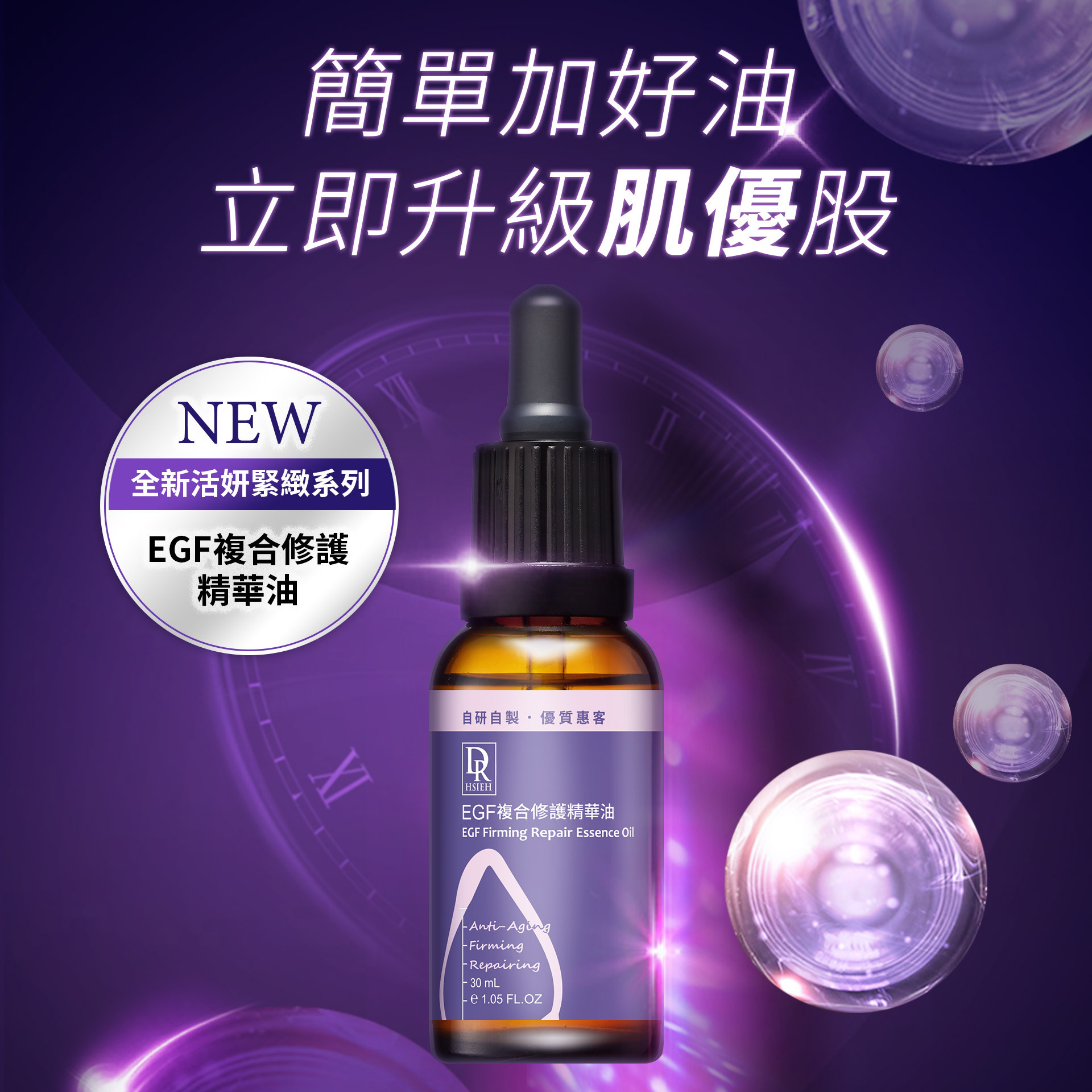 高純度EGF,修護肌膚、賦活肌膚活力,搭配紅沒藥醇,柔敏修護舒緩肌膚乾燥,提升肌膚舒適度。簡單加好油,立即升級肌優股。