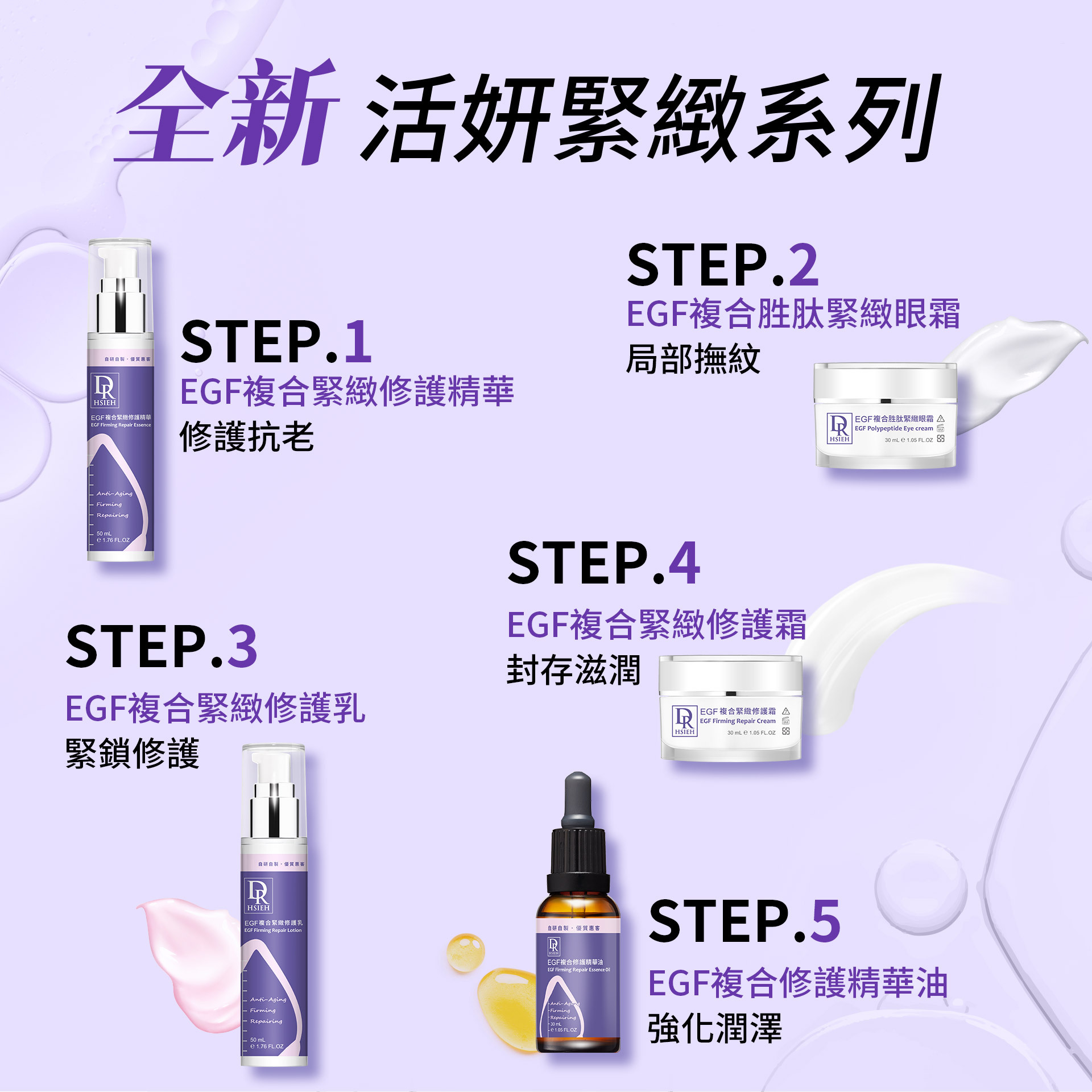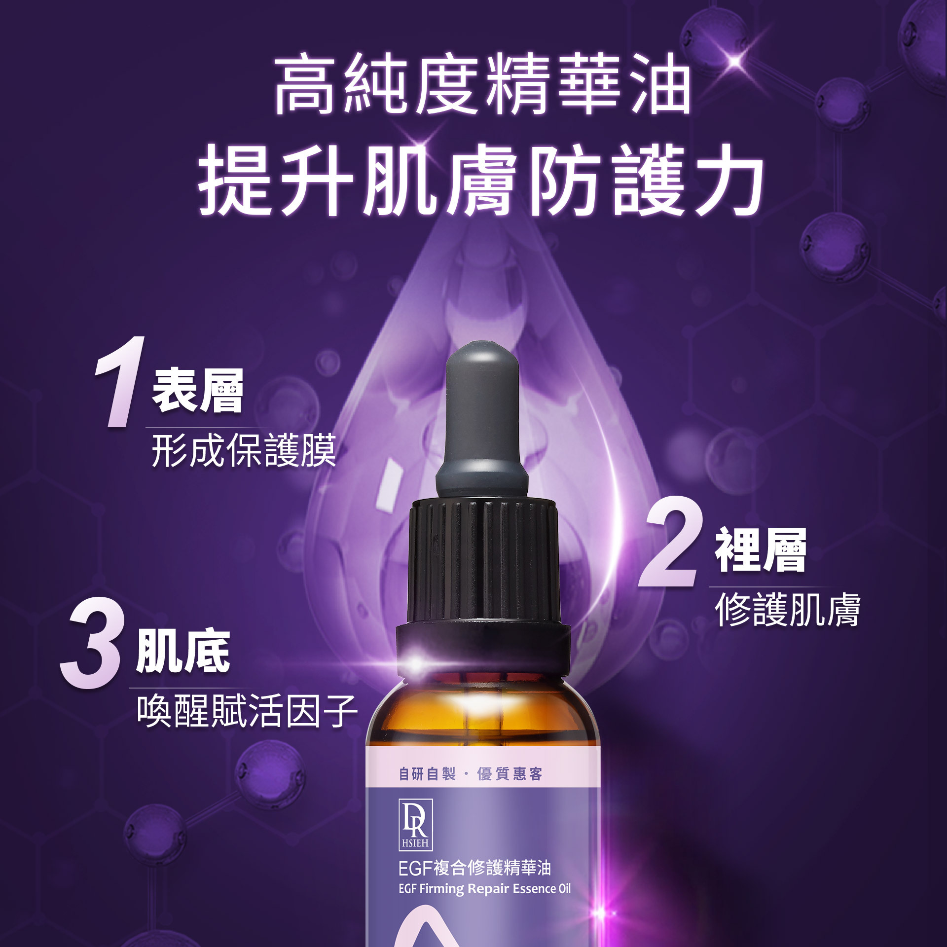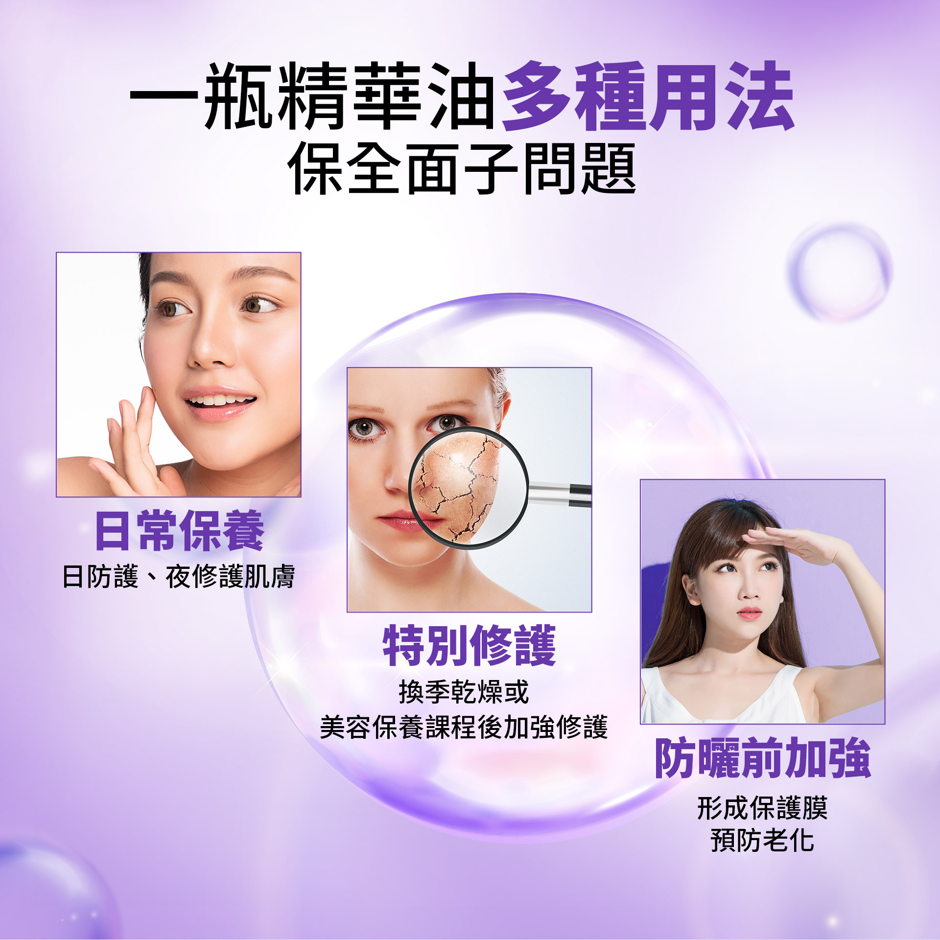 高純度EGF,修護肌膚、賦活肌膚活力,搭配紅沒藥醇,柔敏修護舒緩肌膚乾燥,提升肌膚舒適度。簡單加好油,立即升級肌優股。