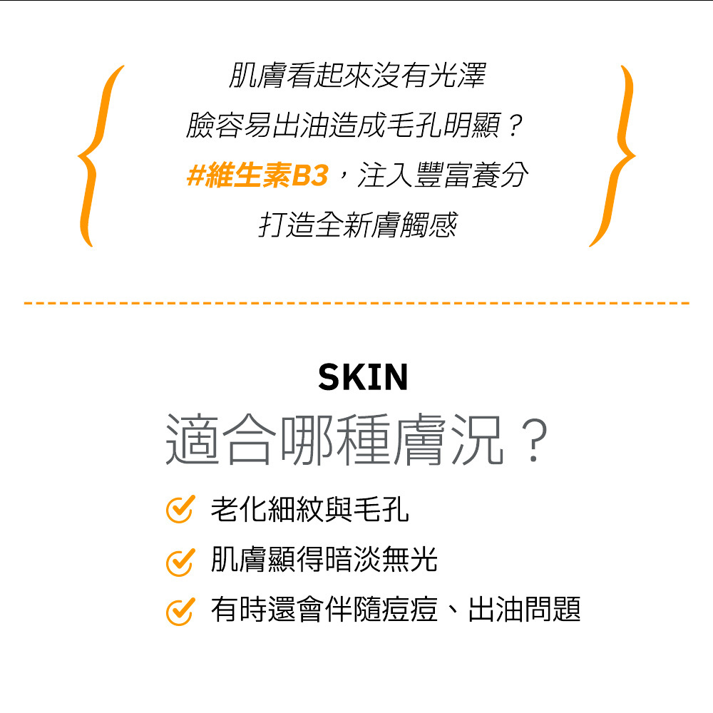 別讓肌膚不開心!維生素B3菸鹼醯胺精華,淨化、亮白、緊緻、調理、修護,多效萬用性保養,是你肌膚不可或缺的亮感精華成分