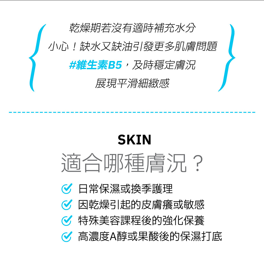 高濃度維生素B5泛醇,百搭護膚保養,幫助肌膚注入保濕力,修護滋養肌膚。一抹維生素B5成分,長效保濕、水嫩透亮。