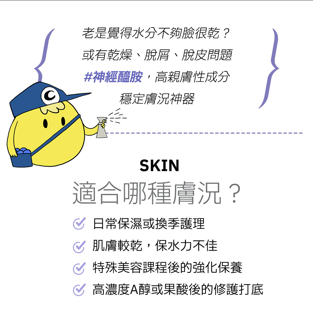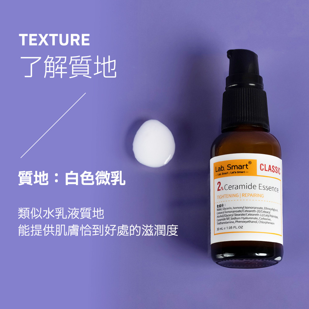 2%神經醯胺高濃度配方,可改善肌膚乾燥、粗糙困擾,滑順的微乳狀質地,舒緩肌膚乾燥、調理肌膚缺水或因乾燥而產生的細紋、保濕滋潤留住水分,同時修護肌膚老化問題達到緊緻作用,使用後膚況呈現光澤彈潤感,為您找回肌膚青春活力!