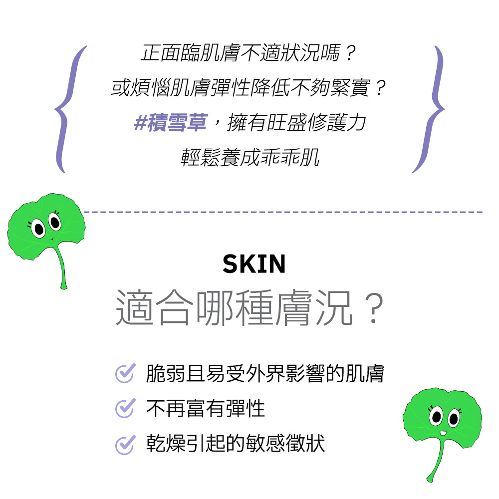 暢銷NO.1積雪草植萃 -柔敏肌修護明星,幫助肌膚舒緩並改善老化問題,讓肌膚擁有緊緻健康膚感。