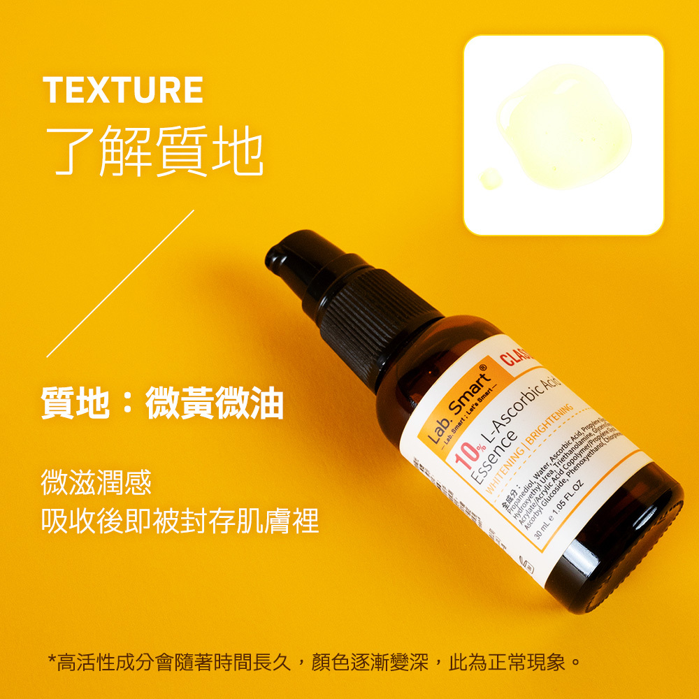 用了很多產品都沒用?推薦這款單一成分-高濃度10%左型C,美白必備的速效活性維他命C 塗抹瞬間開始發揮效用!