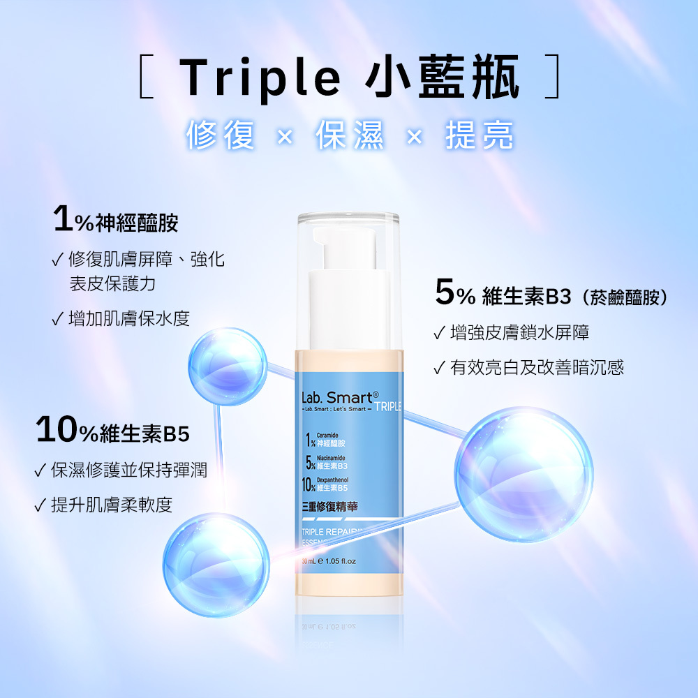 三重合一配方 Triple小藍瓶 修復X保濕X提亮。